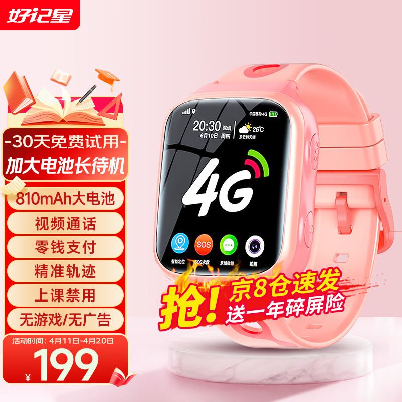 好记星【八仓速发】智能儿童电话手表插卡4G卡通用学生移动电信版防摔游泳级防水wifi精准节日礼物 升级版粉色【加大电池+精准定位+零钱支付+无游戏】价格:229.00元!