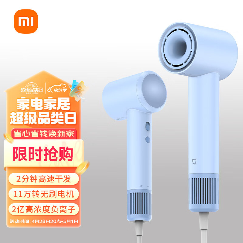 米家小米高速吹风机H501 SE 蓝色 掌中小旋风 疾速干发 大功率负离子护发 无刷电机电吹风 礼物推荐价格:179.00元!