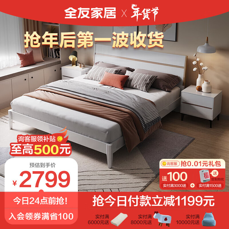 全友家居 床现代简约双人床双色拼接床屏板式床卧室家具126101B价格:3998.57元!