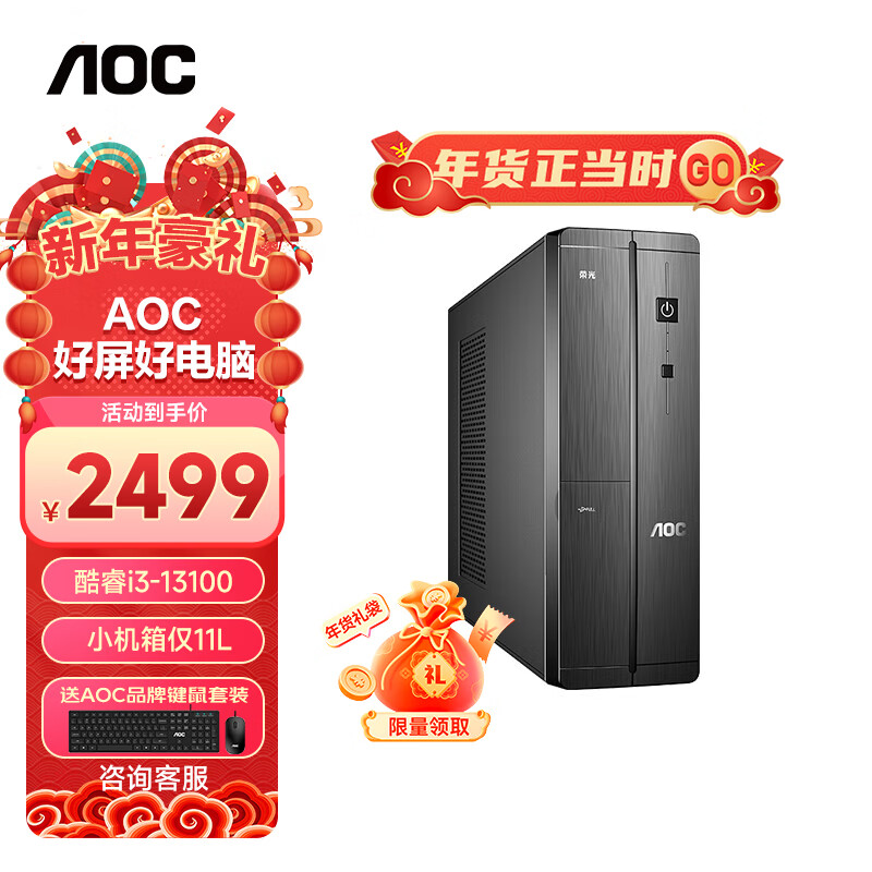 AOC 荣光910 高性能商用办公台式机电脑主机(13代i3-13100 16G 1TB SSD WIFI商务键鼠 三年上门)价格:2499.00元!