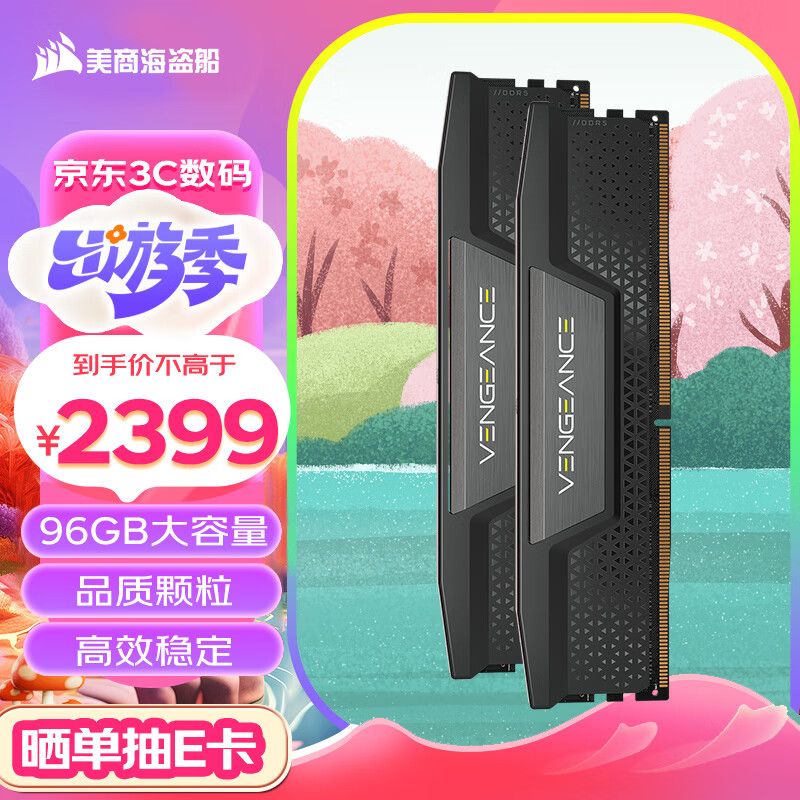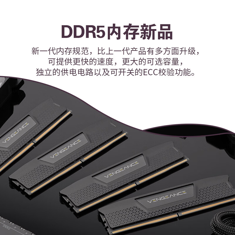 美商海盗船 (USCORSAIR) 96GB(48Gx2)套装 DDR5 5600 台式机内存条 复仇者系列 游戏条 黑色 C40价格:2399.00元!