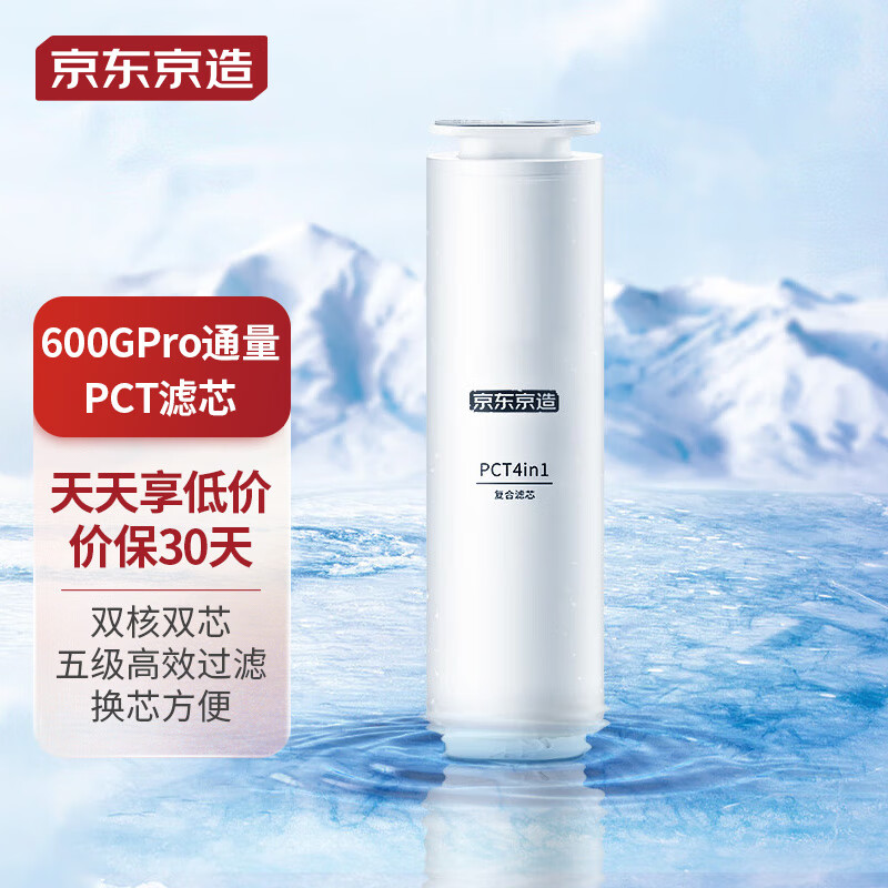 京东京造 净水器家用净水机滤芯 4合1复合滤芯 PCT滤芯【600G/600G PRO净水器通用】自主换芯价格:129.00元!