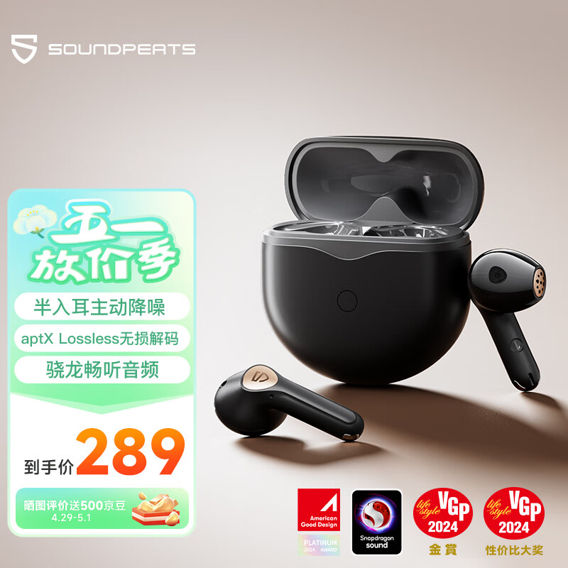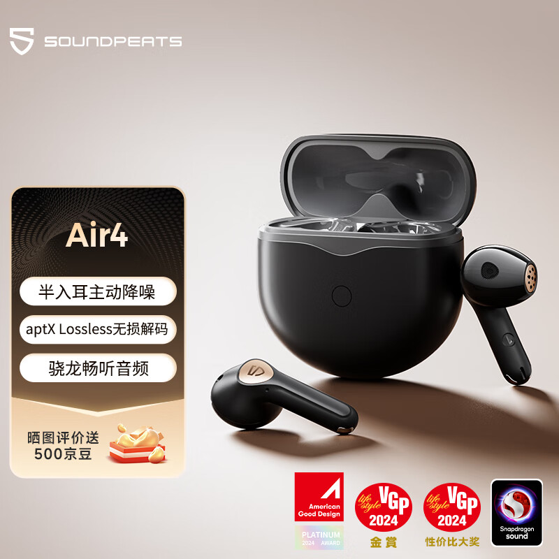泥炭(SoundPEATS)Air4 主动降噪真无线蓝牙耳机 半入耳式泥炭蓝牙耳机自适应主动降噪 蓝牙5.3 泥炭蓝牙耳机 沉浸黑价格:289.00元!