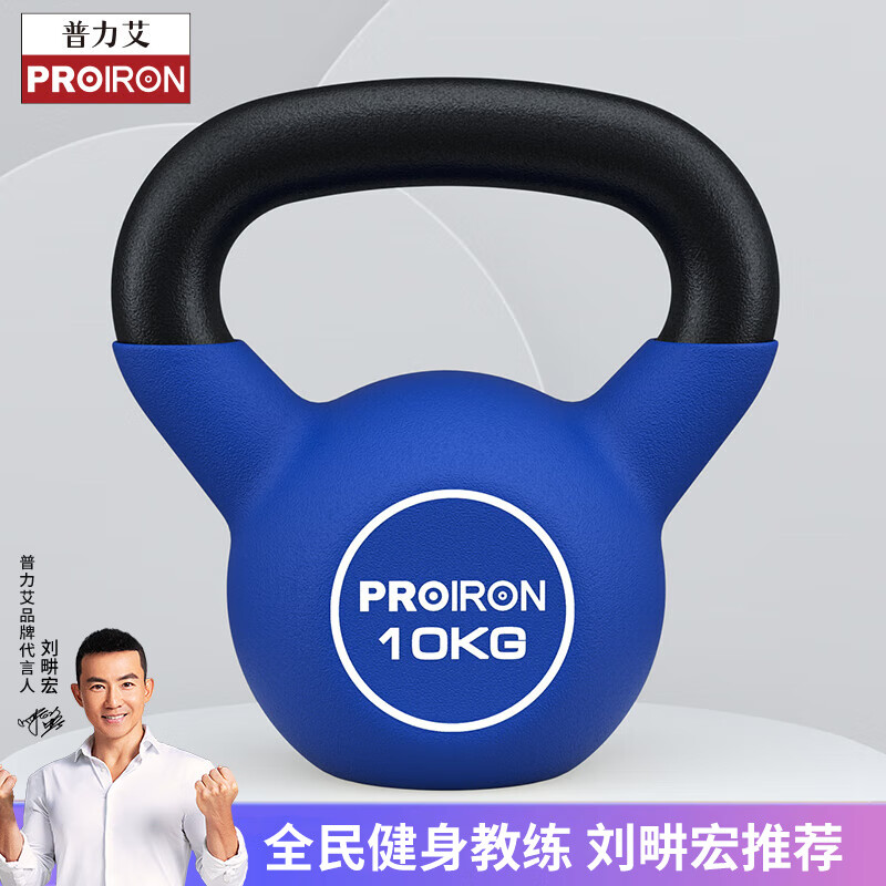 PROIRON普力艾 壶铃男女提壶哑铃壶健身壶铃铸铁深蹲练臀器械浸塑 10KG价格:209.00元!