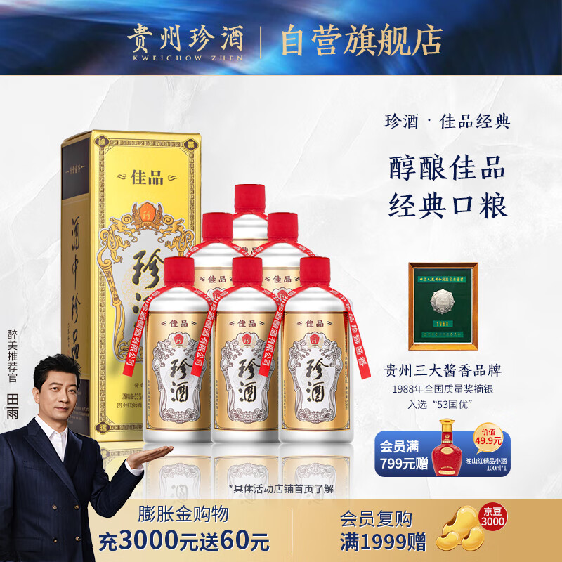 珍酒佳品经典 53度酱香型白酒500ml*6整箱装 口粮酒大曲坤沙价格:768.00元!
