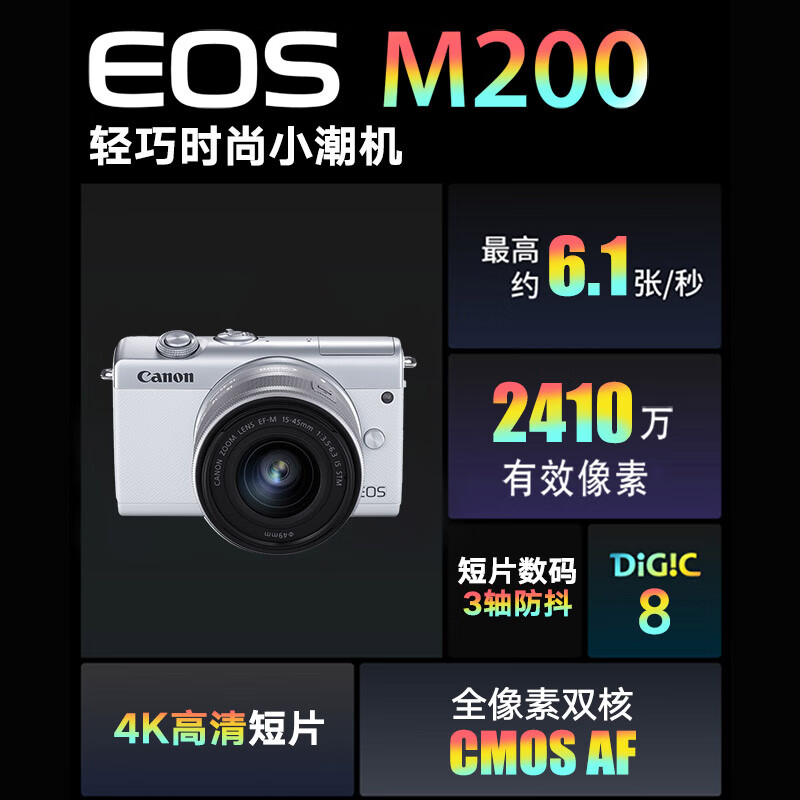佳能(Canon)EOS M200 微单数码相机 白色15-45标准变焦镜头套装 (约2410万像素/眼部追焦)价格:4399.00元!