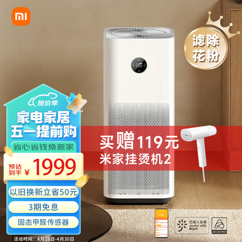 米家小米空气净化器 4 Pro H 家用除甲醛除菌 固态甲醛传感器监测 轻音设计 AC-M23-SC 宠物空气净化器价格:1999.00元!