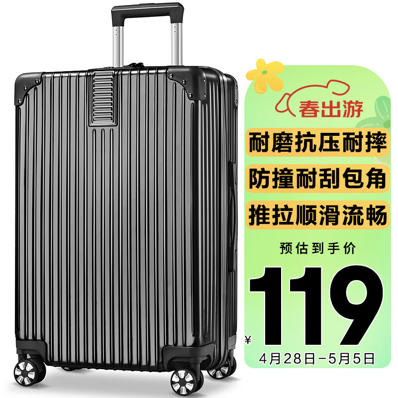 梵地亚行李箱男24英寸大容量万向轮拉杆箱航空旅行箱包密码箱女皮箱子黑价格:169.00元!