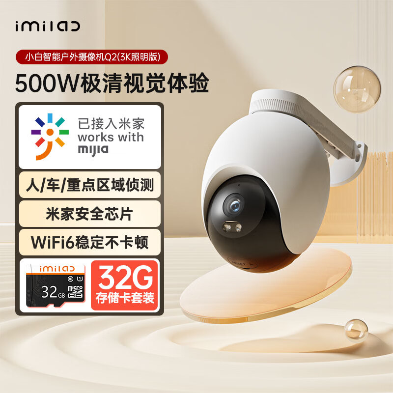 小白Q2已接入米家摄像头室外 500W像素监控网络摄像机 防水防尘手机远程AI人车侦测全彩夜视价格:239.00元!