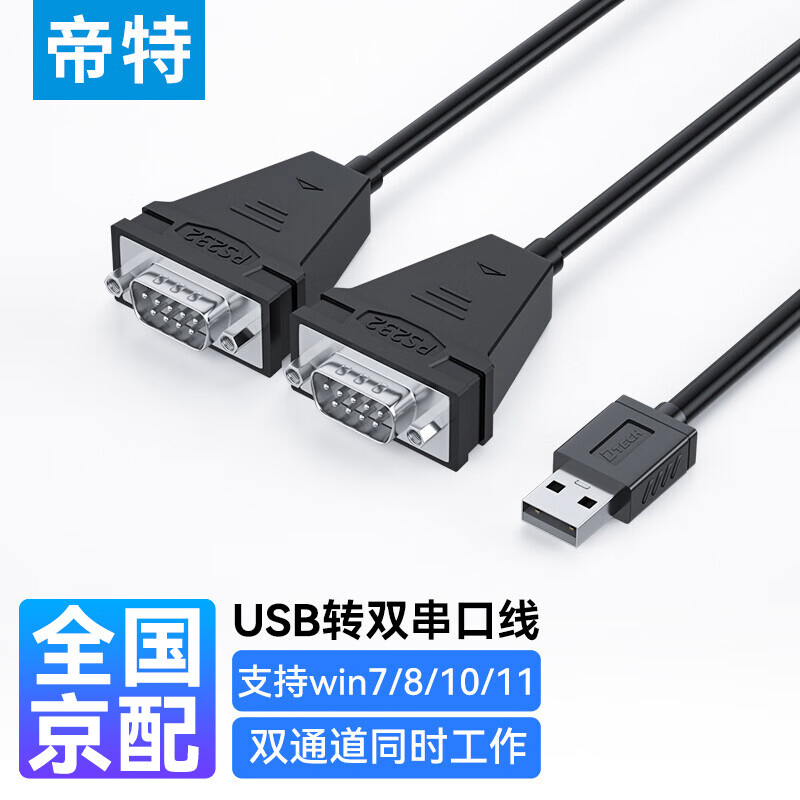 帝特 USB转RS232双串口连接线 DB9针公头螺母RS232一拖二COM口转换器工业级转接线 DT-5024A(2ND)价格:138.00元!