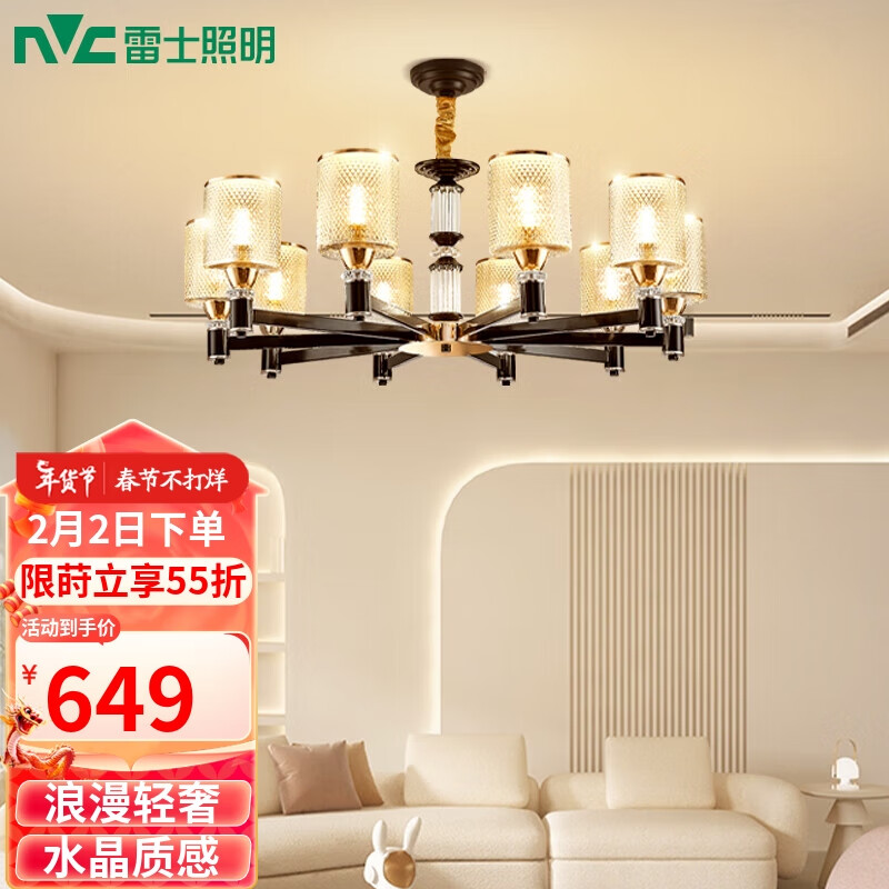 雷士(NVC)美式轻奢现代轻奢客厅灯具卧室餐厅大气吊灯灯饰10头NDBD10-001价格:1179.00元!