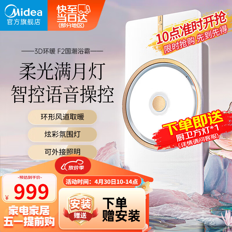 美的(Midea)风暖浴霸暖风排气照明一体集成吊顶卫生间吹风环形双核智能浴室F2价格:1299.00元!