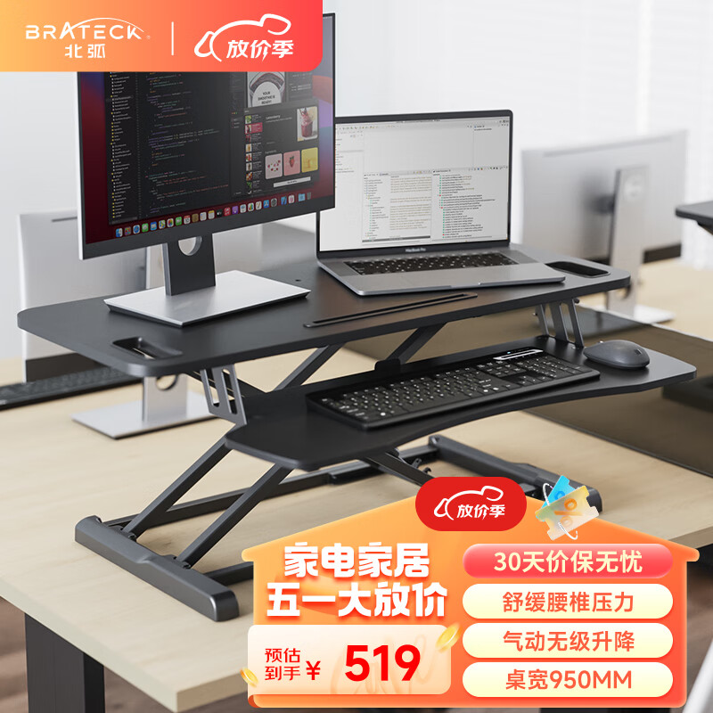 Brateck升降电脑桌 北弧站立办公升降台 站立式电脑升降支架 D450L黑价格:619.00元!