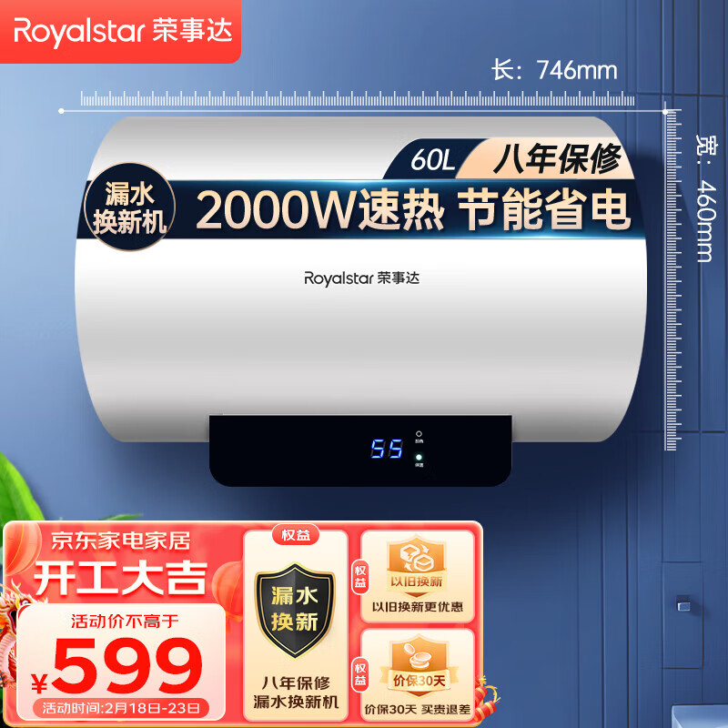 荣事达(Royalstar)储水式电热水器电家用速热数显节能热水器小体积省电RSD-CZC60T价格:599.00元!