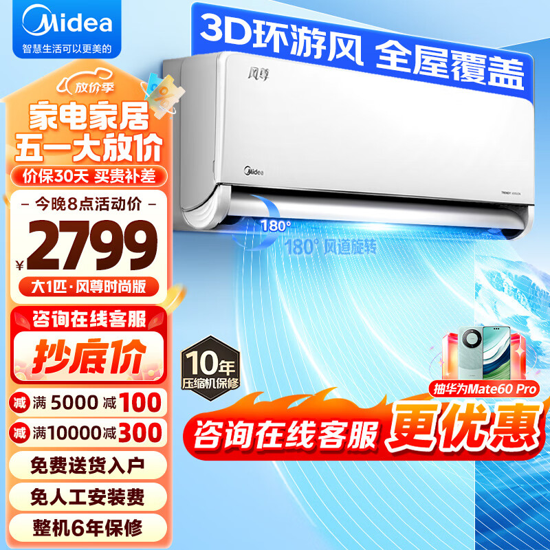 美的(Midea)空调大1匹挂机 风尊时尚版 新一级能效 变频冷暖 节能省电 壁挂式 KFR-26GW/N8MXC1 卧室书房空调价格:2699.00元!