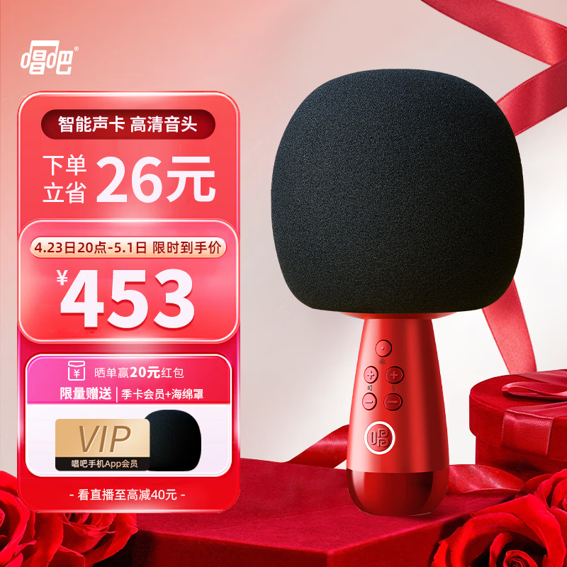 唱吧小巨蛋麦克风G2升级版 手机K歌麦克风音响一体 家庭娱乐KTV无线话筒 高音防啸叫 绯红色价格:453.00元!