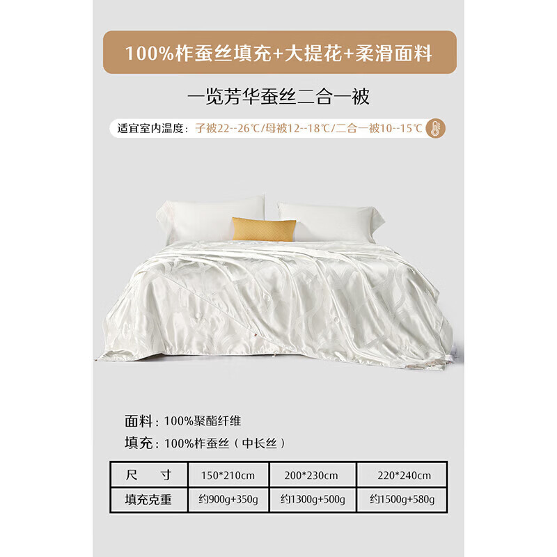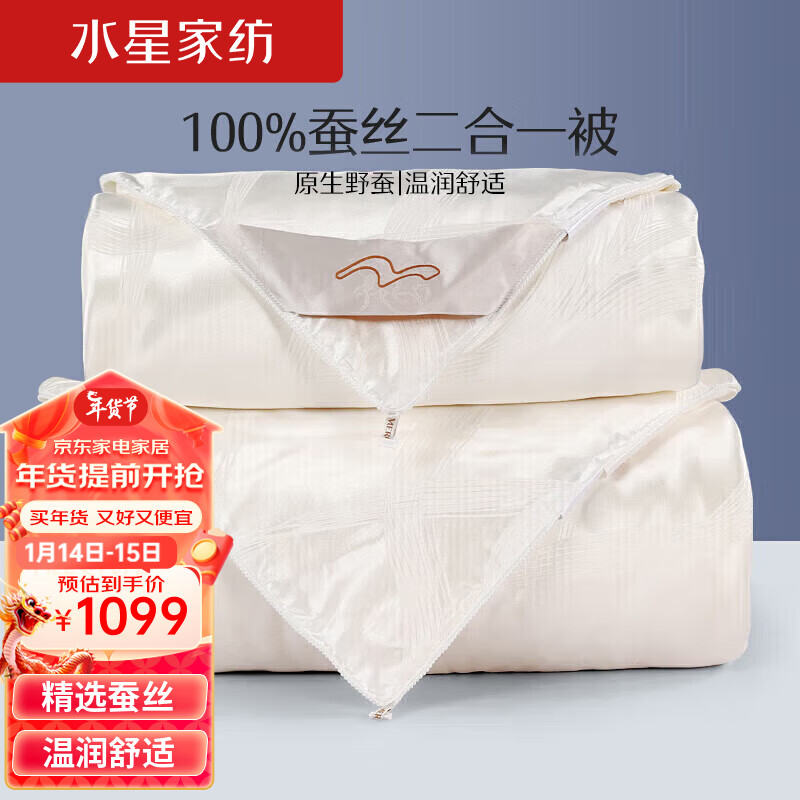 水星家纺100%蚕丝被二合一子母被秋冬加厚被约9斤220*240cm价格:1599.00元!