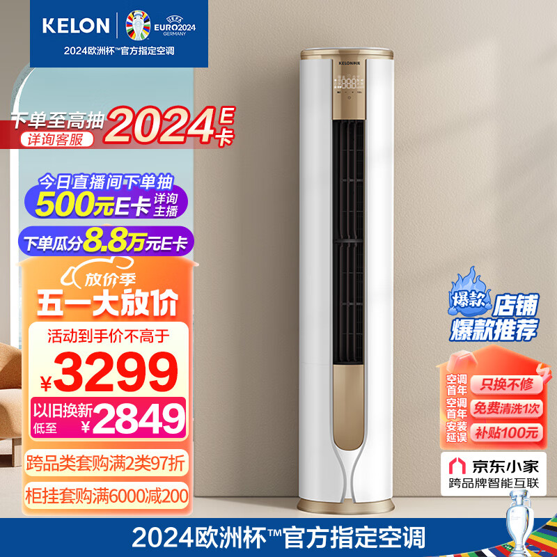 科龙(KELON)空调 2匹 新一级能效 舒适柔风 变频冷暖 圆柱立式柜机 健康自清洁 郁金香KFR-50LW/VEA1(1P60)价格:3298.00元!