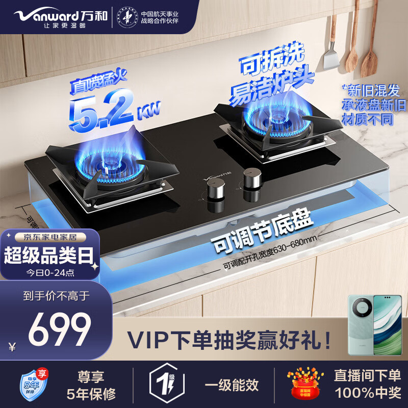 万和(Vanward)燃气灶天然气 双灶具 家用5.2kW猛火灶台嵌两用 钢玻面板 可调节底盘 65%热效率JZT-C5L90S 天然气价格:699.00元!