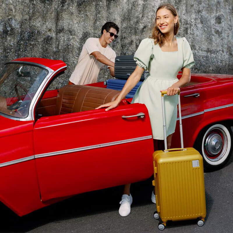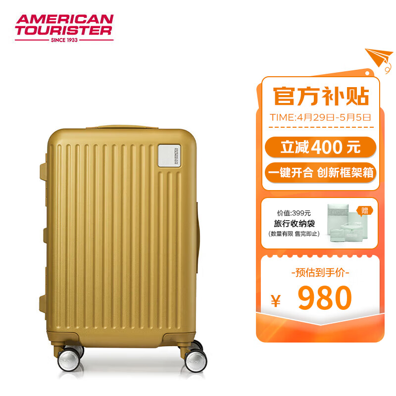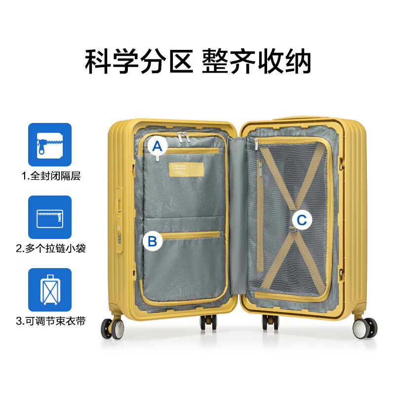 美旅箱包时尚休闲行李箱竖条纹轻便拉杆箱旅行箱QI9芥末黄20英寸价格:980.00元!