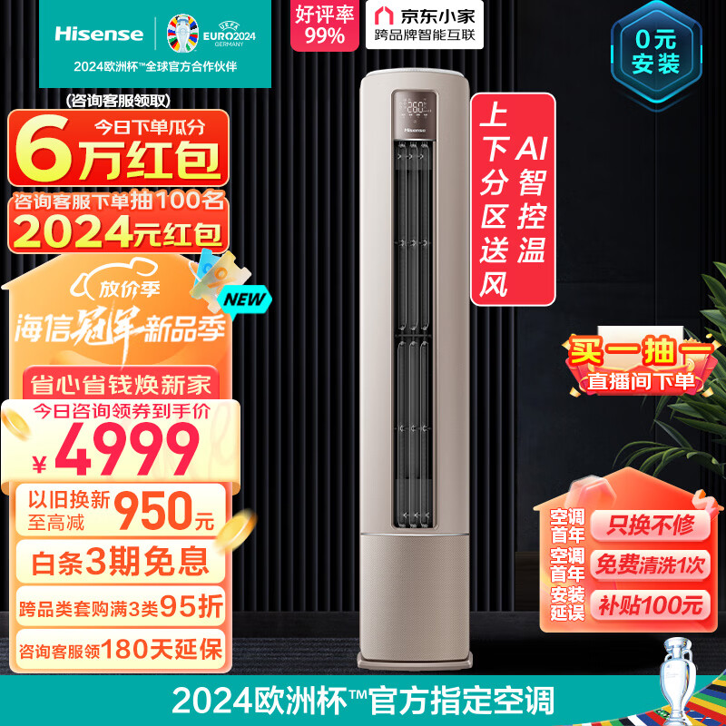 海信(Hisense)3匹 新一级大风量分区送风 AI控温客厅空调立式柜机 KFR-72LW/S550-X1【一价全包版】价格:4999.00元!