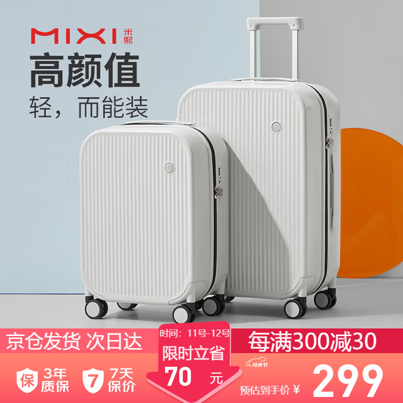 米熙行李箱女拉杆箱旅行箱子密码箱潮流设计登机箱拉杆箱20英寸烟白73价格:369.00元!
