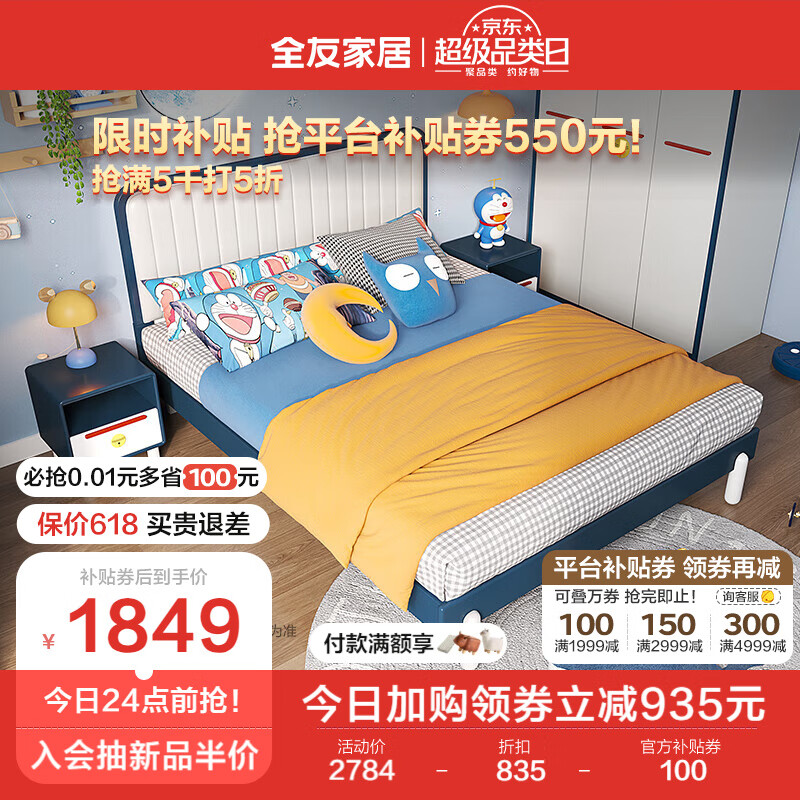 全友家居 现代简约青少年床欧皮软包单人床家具组合121339价格:2784.29元!