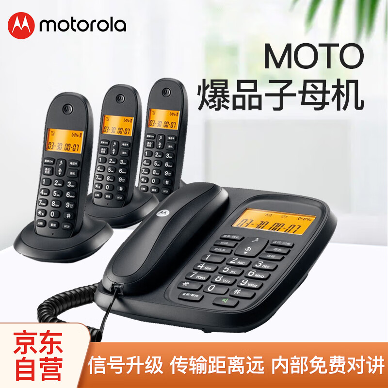 摩托罗拉(Motorola)数字无绳电话机 无线座机 子母机一拖三 办公家用 中文显示 双免提套装CL103C(黑色)价格:569.00元!