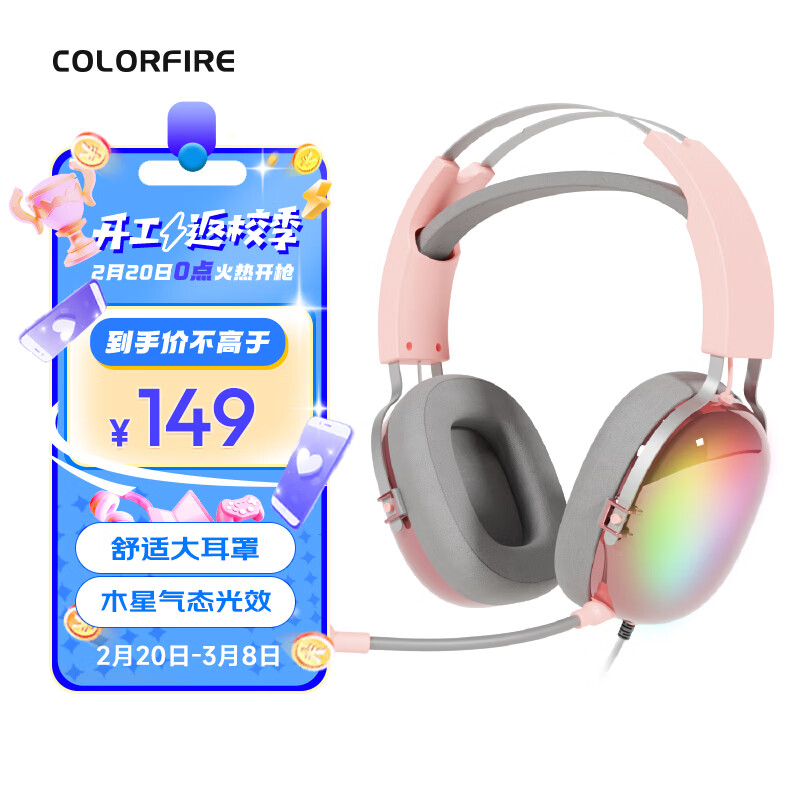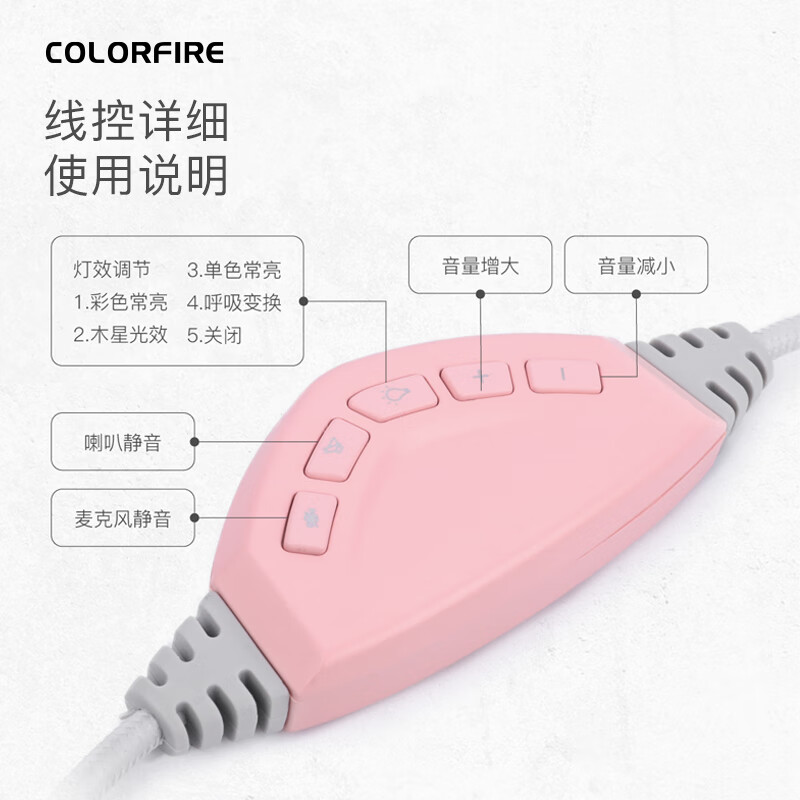 Colorfire头戴式耳机 游戏耳麦 RGB幻彩灯效电竞吃鸡电脑 有线USB带麦立体环绕声 木星粉色价格:149.00元!
