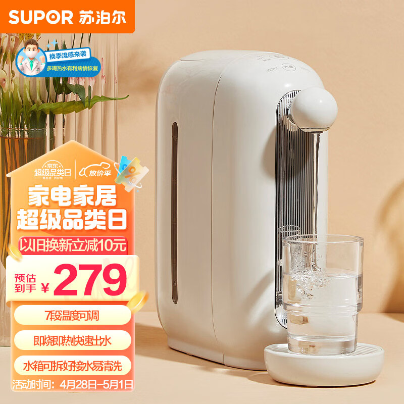 苏泊尔(SUPOR)即热电水壶 2.8L 迷你家用台式饮水机 电热水壶恒温烧水壶 饮水器茶水机 SW-JR0201A价格:279.00元!
