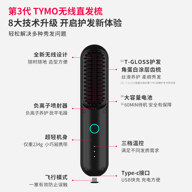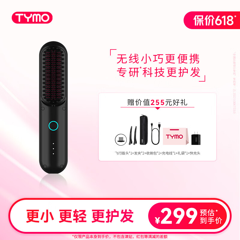 TYMO无线直发梳负离子养发护发两用夹板神器家用美发造型梳护发梳电梳子直板夹 520送女生节生日礼物价格:299.00元!