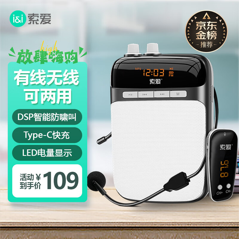 索爱(soaiy)S518小蜜蜂扩音器教师专用FM无线防啸叫喇叭腰挂麦克风导游便携式蓝牙音箱收音机喊话器Type-c黑价格:105.00元!