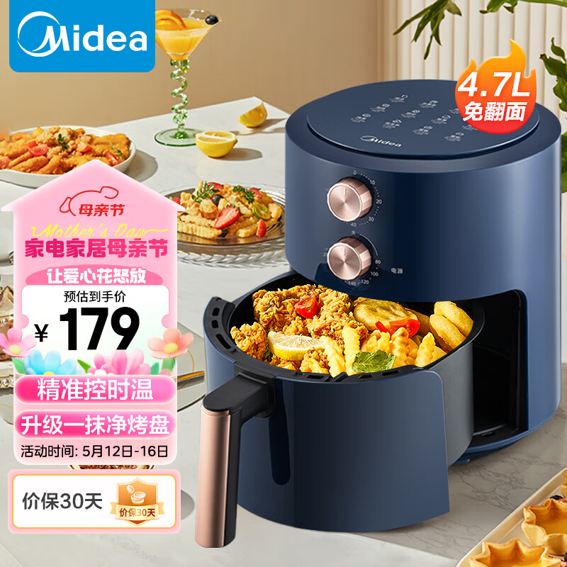 美的(Midea)空气炸锅 免翻面 家用大容量 4.7L 炸烤箱一体 精准控温 不沾易洗 不用翻面 KZE5054价格:179.00元!