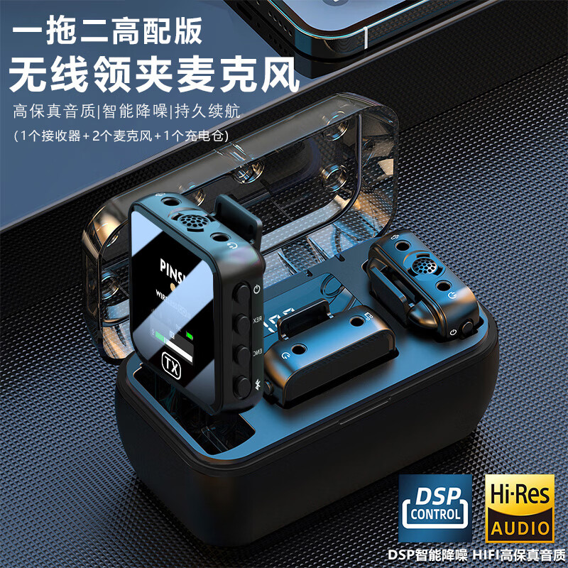 品士m32充电仓一拖二无线麦克风领夹式直播收音麦手机抖音拍摄短视频设备声卡吃播蓝牙降噪户外价格:449.00元!