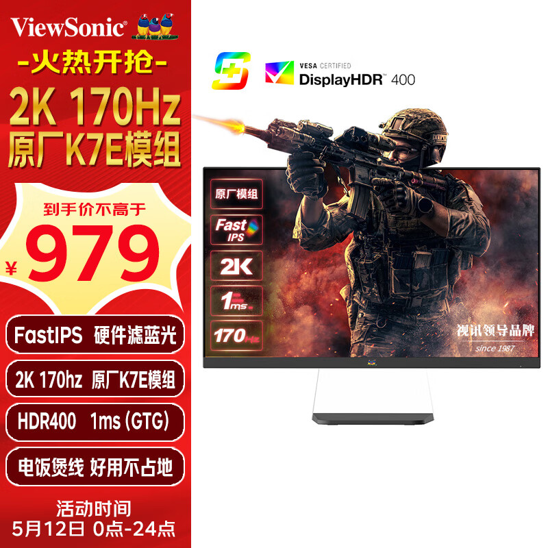优派27英寸原厂背光 2K 170Hz FastIPS 1ms(GtG) HDR400 爱眼滤蓝光 猛擎悬浮电竞显示器VX2781价格:1299.00元!