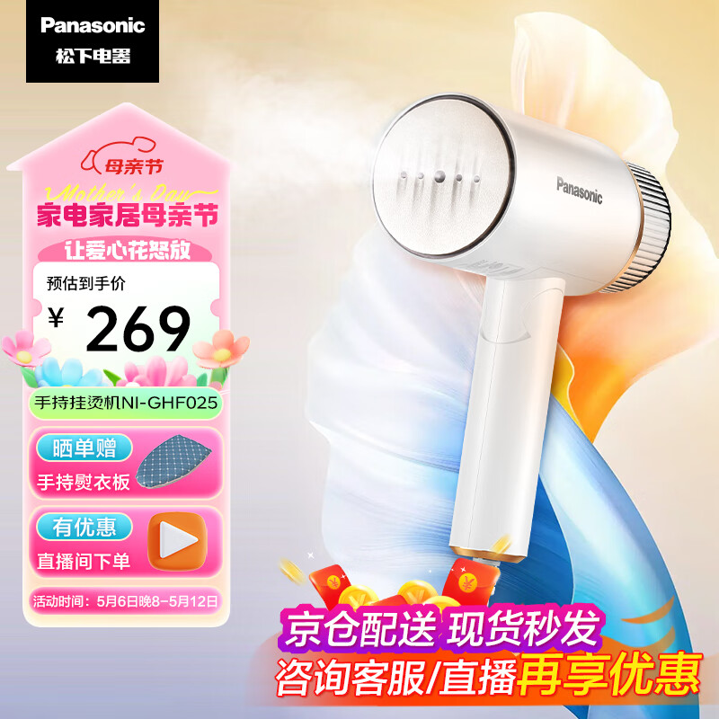 松下(Panasonic)挂烫机家用 熨斗 蒸汽挂烫机 便携 手持挂烫机 电熨斗 NI-GHF025 铅白价格:269.00元!