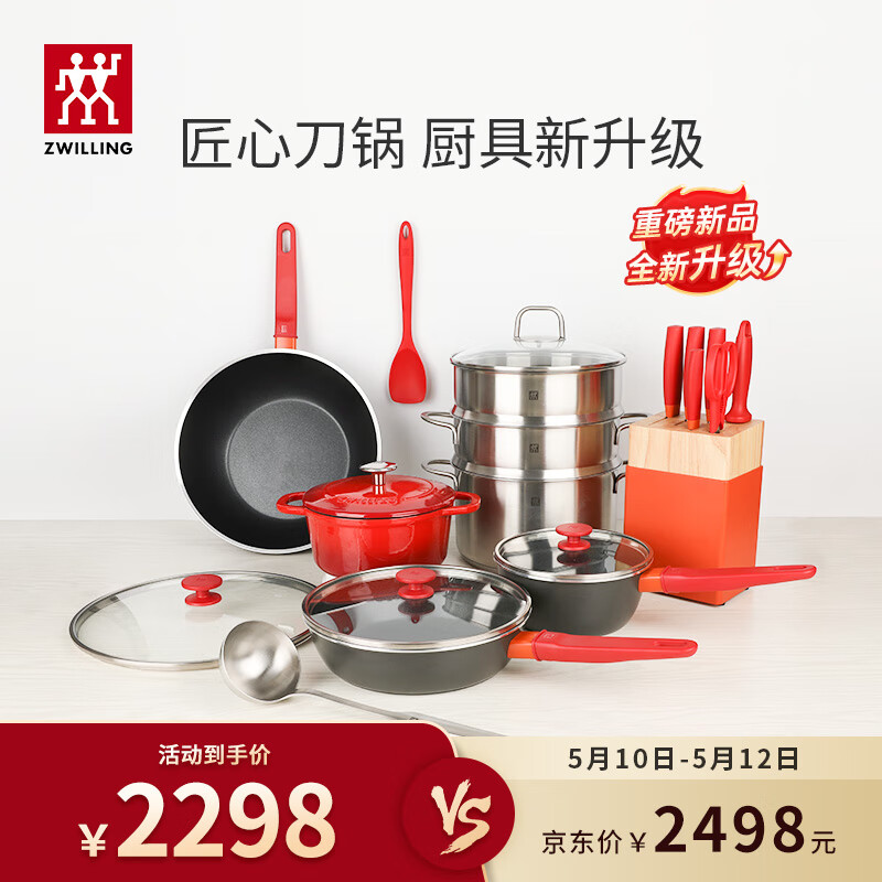 双立人(ZWILLING)锅具套装汤锅蒸笼刀具套装不粘炒锅煎锅奶锅珐琅锅厨具全套16件套价格:2498.00元!