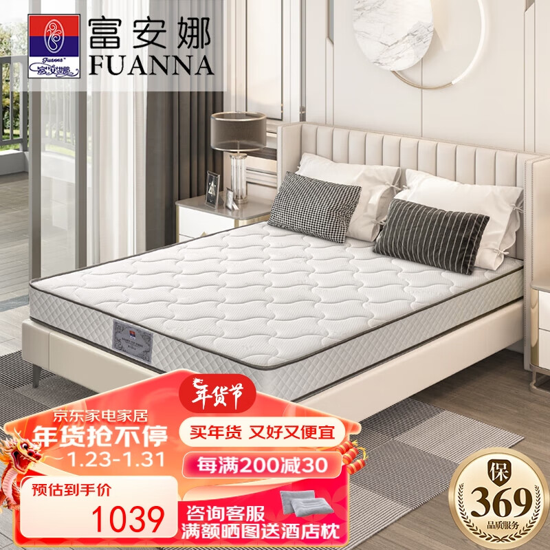 富安娜床垫 偏硬护脊椰棕床垫 席梦思防螨面料邦尼尔弹簧床垫子 1.5*2米价格:1189.00元!