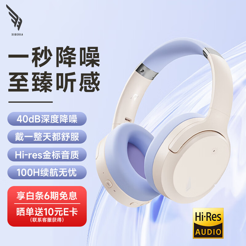 西伯利亚(XIBERIA)羽DM02无线头戴式蓝牙耳机ANC主动降噪音乐游戏运动耳机丁香紫价格:179.00元!