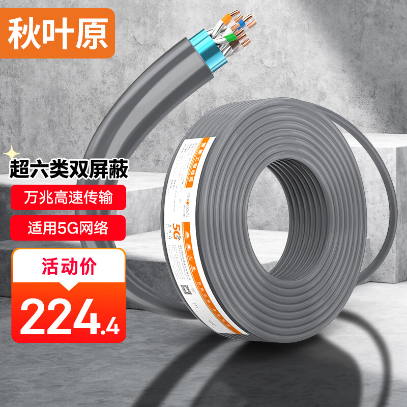 秋叶原(CHOSEAL)超六类双屏蔽网线 CAT6A类万兆抗干扰降衰减纯铜 工程家装网络宽带线 灰 50米 QS2669AT50S价格:255.00元!