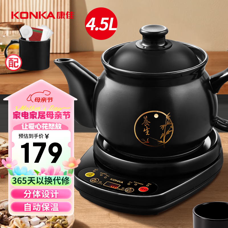 康佳(KONKA)煎药壶 中药壶 中药锅 熬药电砂锅 中药煲4.5升大容量分体式陶瓷全自动智能家用 KJYH-WHG603价格:179.00元!