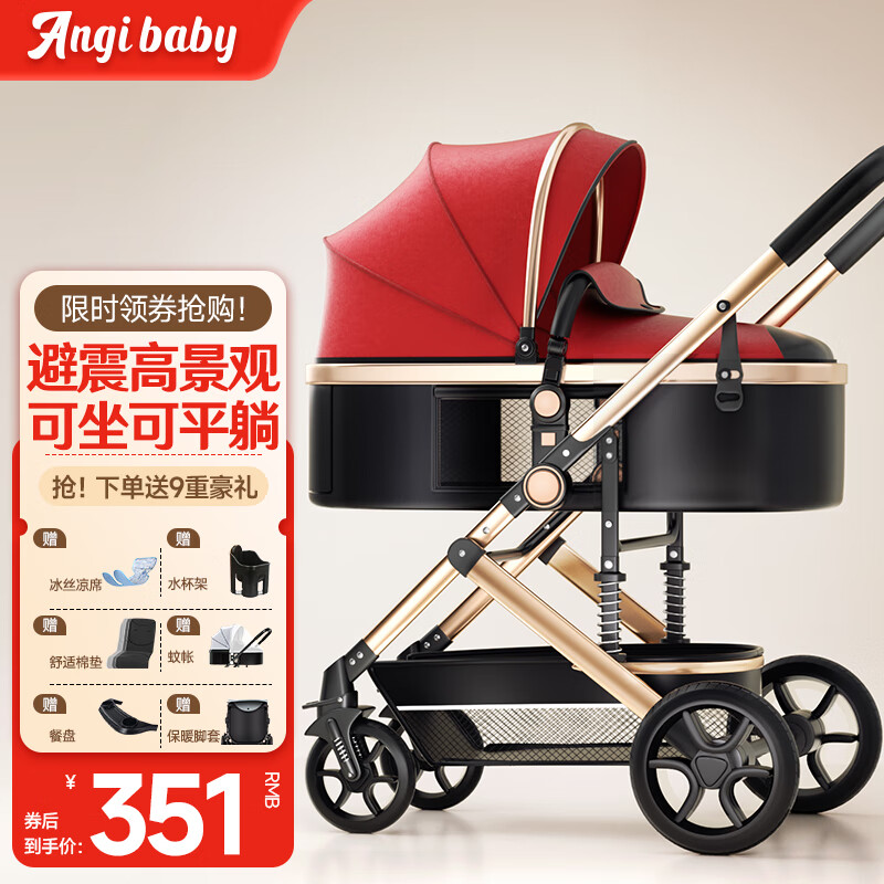 ANGI BABY婴儿推车可坐可躺可折叠婴儿车高景观双向减震手推车价格:399.00元!