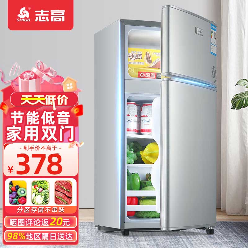 志高(CHIGO)76升小冰箱 双门宿舍租房小户型家用 冷藏冷冻双开门 迷你电冰箱节能保鲜小冰箱BCD-76A138D 银色价格:408.00元!