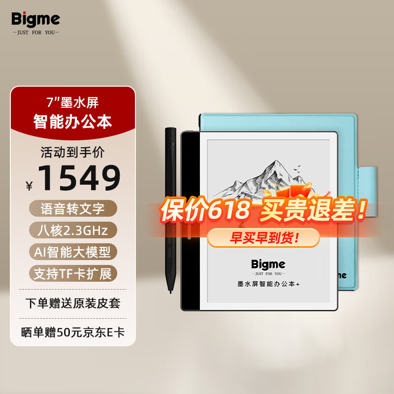 BIGME大我 B751 7英寸智能办公本墨水屏电子书阅读器手写本电纸书电子笔记本电子纸 海天蓝保护套套装价格:1549.00元!