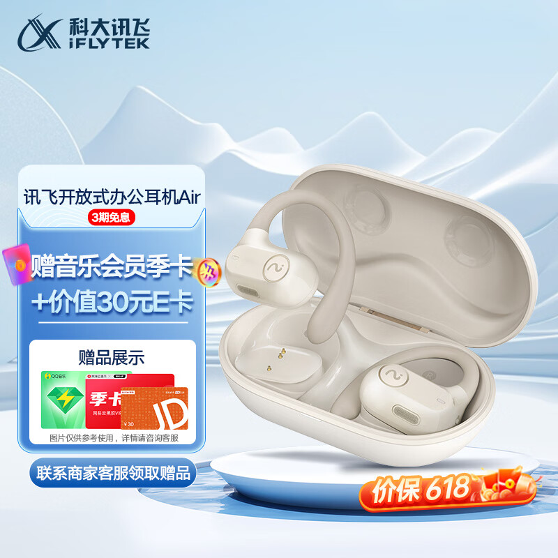 科大讯飞开放式办公耳机 Air 白 无线蓝牙耳机 骨传导升级气传导运动录音耳机 同传听译 适用苹果华为价格:959.00元!
