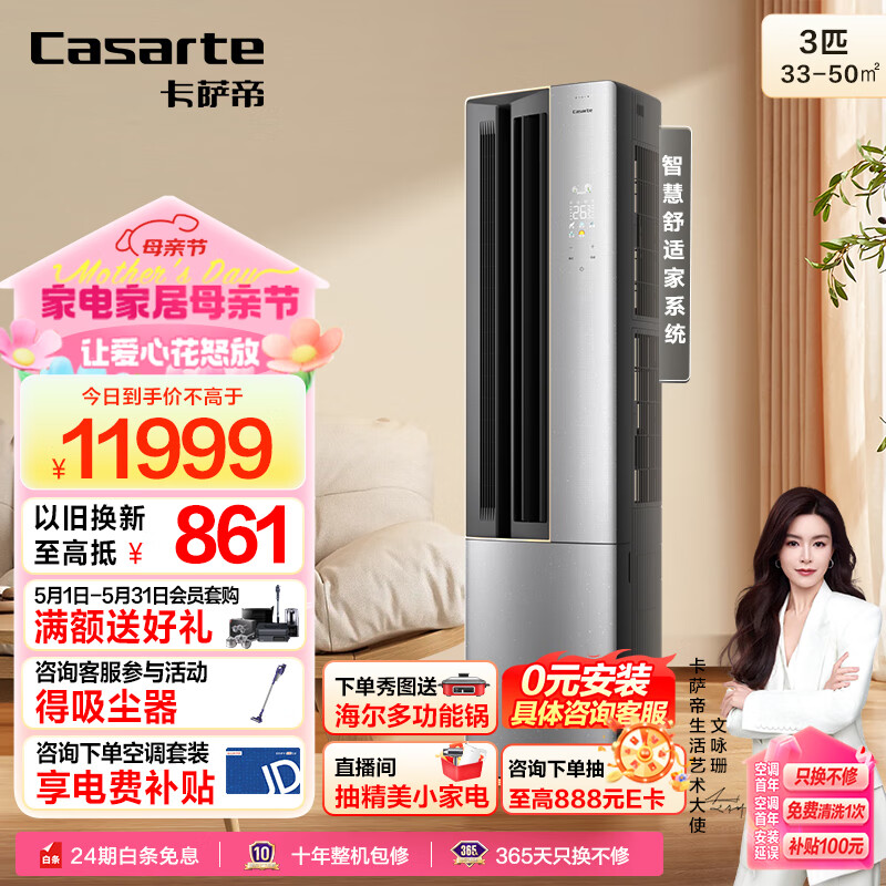 卡萨帝(Casarte)3匹 星云 双极离子除菌 复合软风 立式空调柜机 一级能效 智能变频 CAP7216BAB(81)VU1价格:11999.00元!
