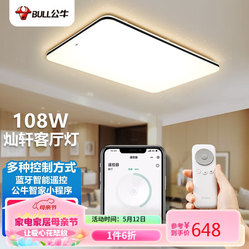 公牛(BULL)LED吸顶灯蓝牙遥控小程序MX-C108T-CD灿轩智能客厅灯卧室灯108W价格:1080.00元!