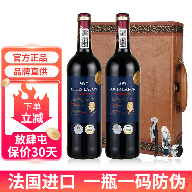 路易拉菲(LOUIS LAFON)法国原瓶进口红酒 赤霞珠波尔多干红葡萄酒G97 2支高档双支礼盒装价格:468.00元!