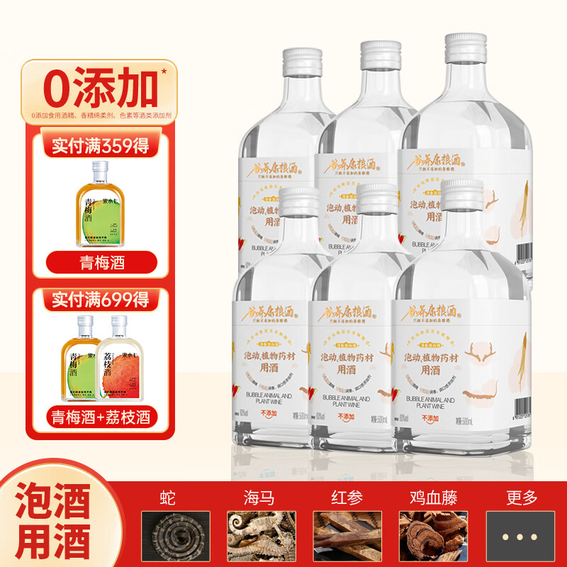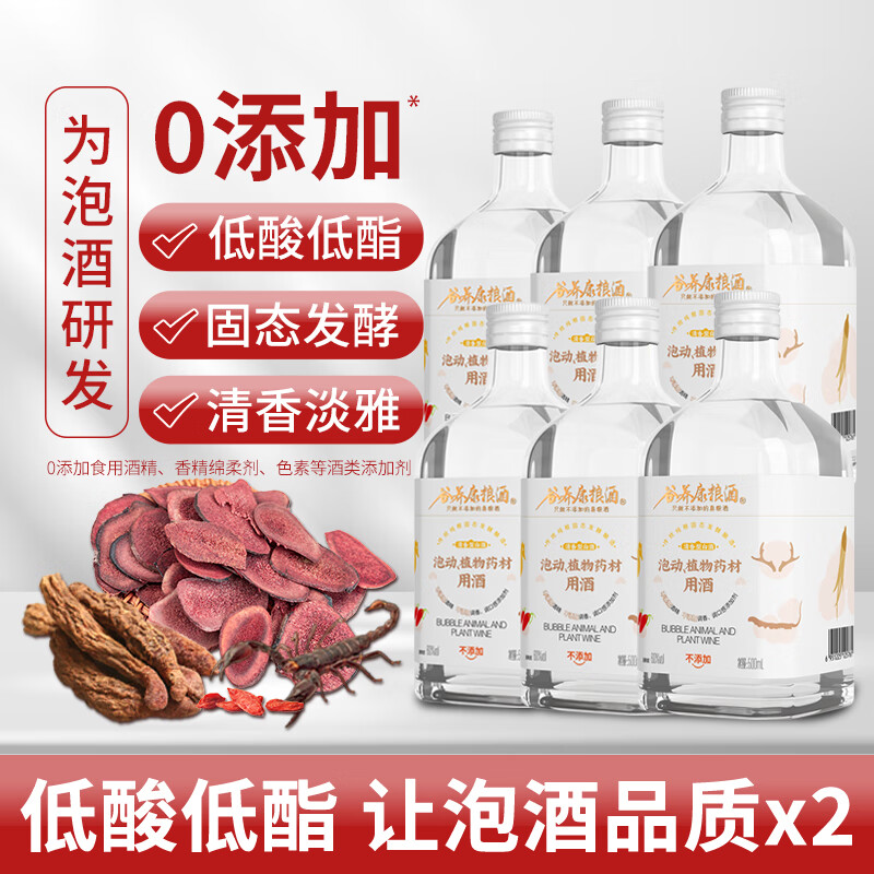 谷养康粮食酒 年货节 泡酒用酒瓶装清香高粱酒白酒泡果酒泡药酒纯粮酒 60度 500mL 6瓶 【适合动植物类】价格:261.00元!