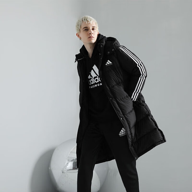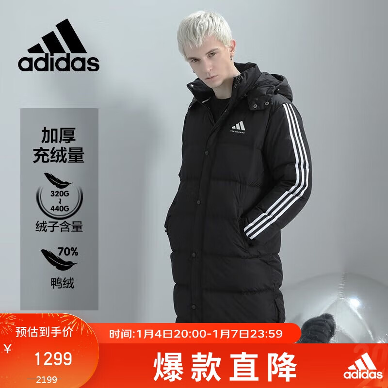 阿迪达斯 (adidas)羽绒服男2023冬季保暖外套加厚鸭绒长款羽绒服 黑白 3XL价格:1299.00元!